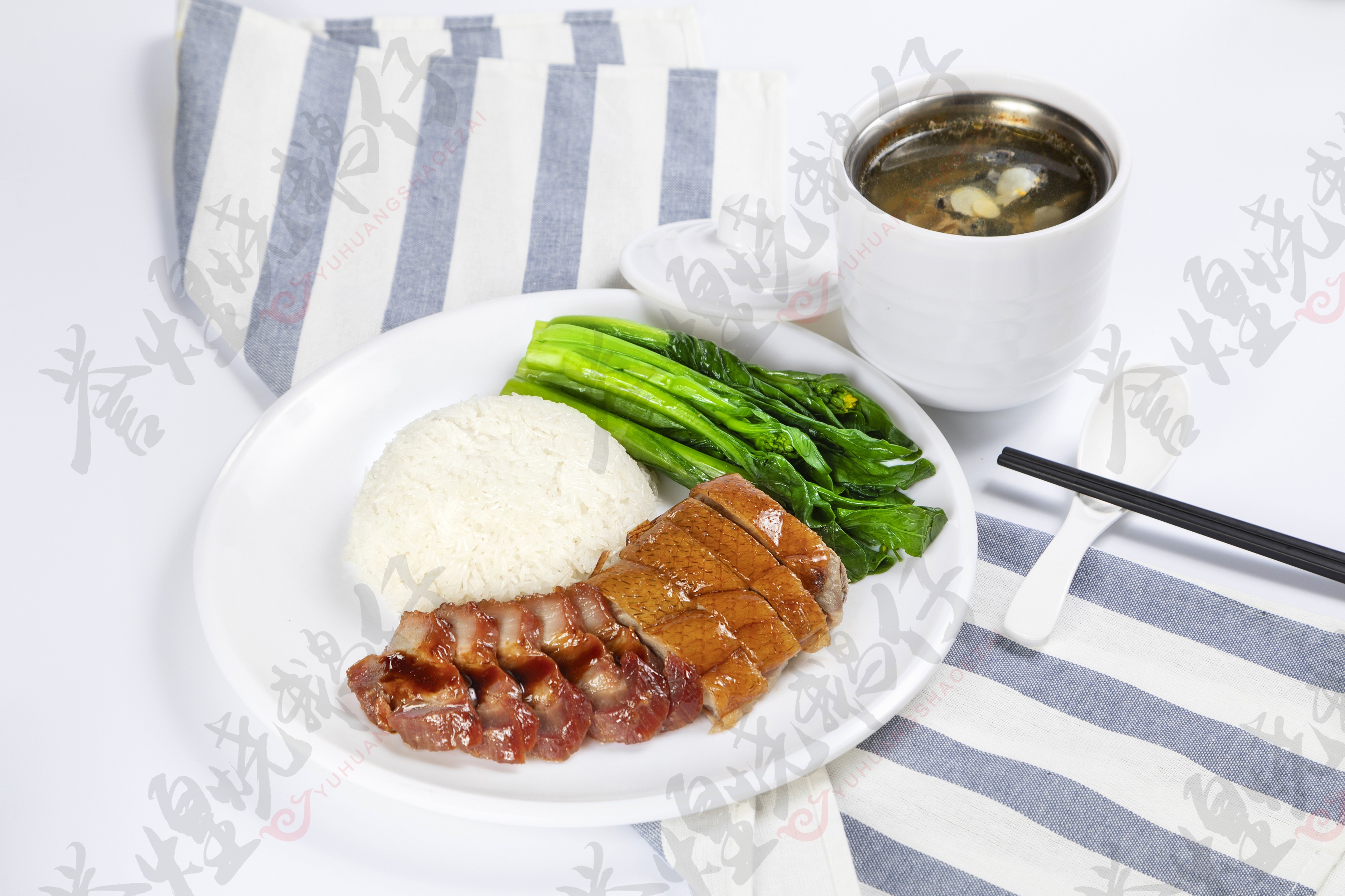 烧鹅拼瘦叉饭+花旗参炖竹丝鸡汤